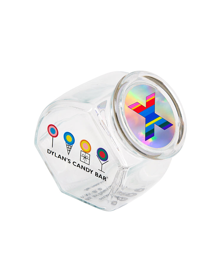This personalized take on our classic candy jar sparkles with a metallic lid featuring a rainbow initial of your choice. Perfect for filling up with our Bulk Candy, our glass Personalized Mini Candy Jars make memorable gifts and party favors, are a great addition to your desk for school or work snacking, & more.