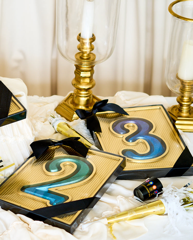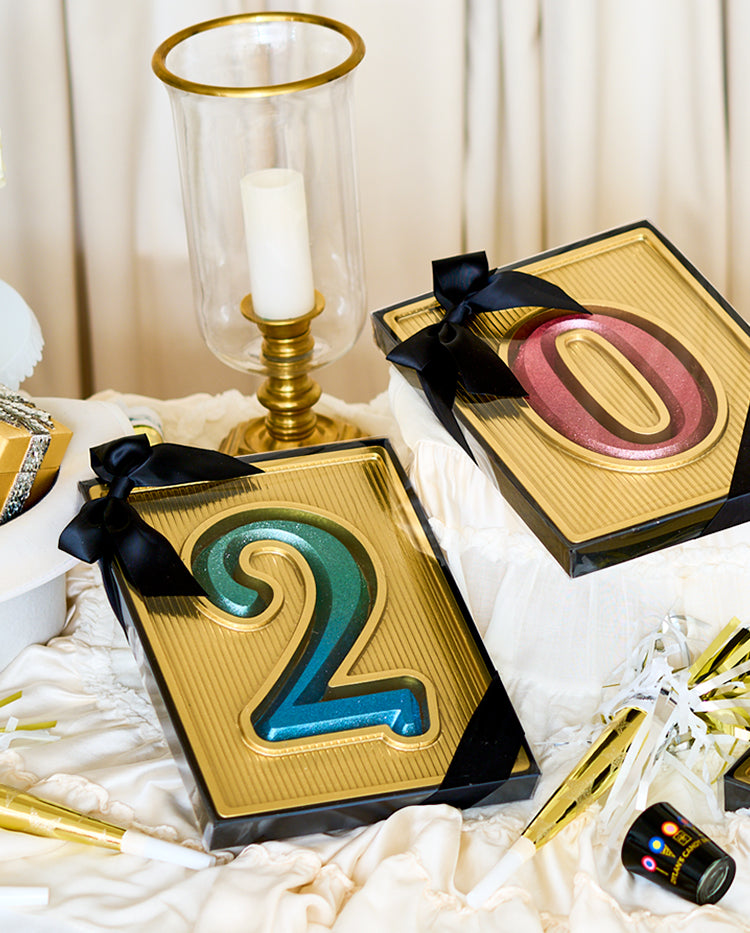 There’s no sweeter way to celebrate a birthday, commemorate an anniversary, or write out another special message than with our oversized, Ombré Glitter Chocolate Numbers! Our sparkly, colorful, & colossally delicious numbers are sure to impress as place settings, hostess gifts, party favors, & beyond!